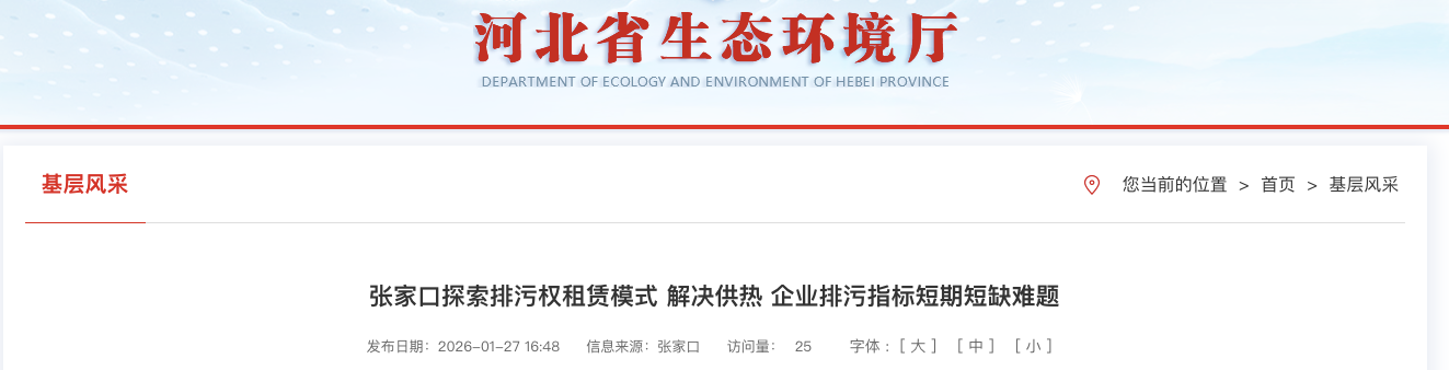 政府搭台,全程帮扶。为保障冬季民生供热,部分企业在供暖高峰期需要临时启用备用锅炉,排污指标出现阶段性缺口。张家口市生态环境局在前期调研中了解到这一情况后,通过组织专场政策交流、建立“一对一”定向帮扶机制等措施,精准匹配资源,引导供热企业采用租赁模式,解决短期排污指标需求。在办理排污权租赁相关程序中,张家口市生态环境局简化审批流程,实行全程帮扶,促成供需双方达成合作。这一合作模式既保障了民生供热项目的环保合规,满足了群众温暖过冬的需要,也为出让企业带来了实实在在的收益。