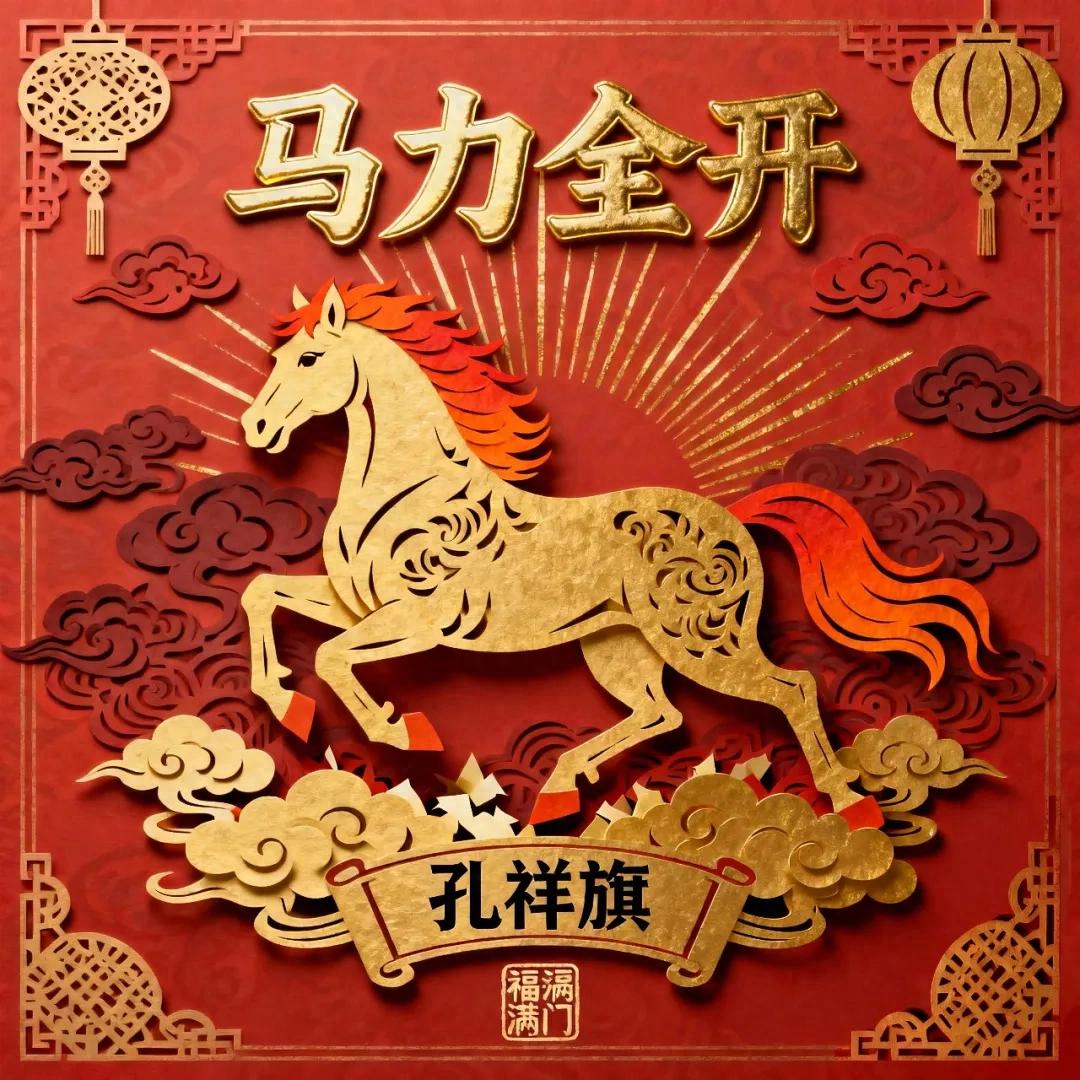 由文艺韬作词作曲、唐显程编曲、孔祥旗倾情演唱的新年特别呈现单曲 《马力全开》 作为一首为马年量身定制的贺岁佳作,《马力全开》歌词充满了对传统文化的巧妙运用与美好寓意。歌曲延续了节庆歌曲的活力与动感,旋律朗朗上口,节奏明快有力。孔祥旗的演唱更是极具感染力,他那充满喜悦与力量感的声线,完美诠释了“马头高抬正气宏,马背驮着鸿运腾”的豪迈与自信,让听众不由自主地随之律动,仿佛真的策马奔腾在充满希望的大道上。