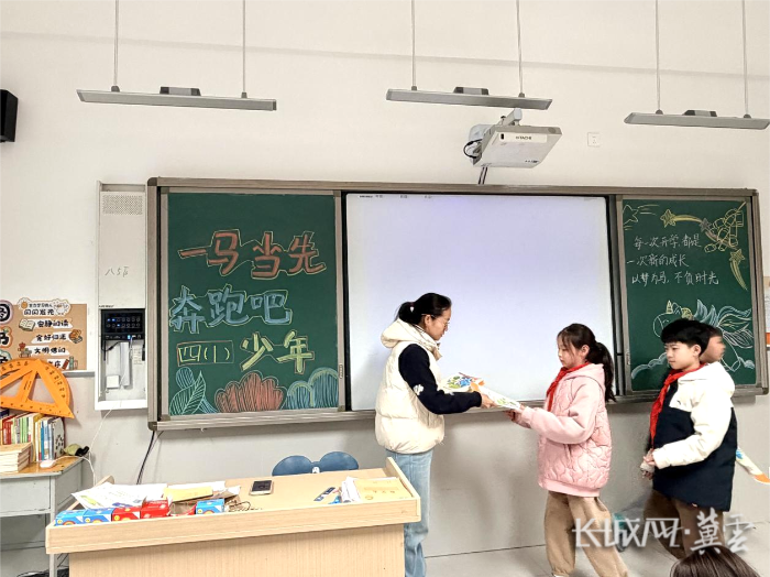 石家庄高新区封龙大街小学的老师为同学们发放新课本。石家庄市教育局供图
