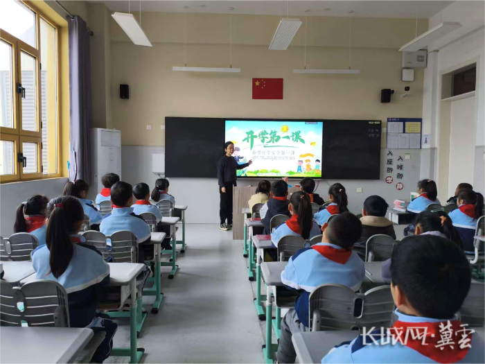 石家庄仓盛路小学正在进行“开学第一课”。石家庄市教育局供图