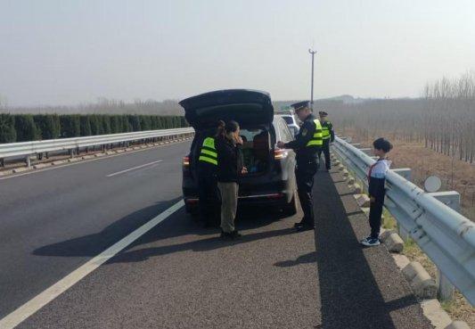 三月的春风带来了些许暖意。3月25日下午3时许,潍坊市交通运输综合执法支队潍日高速大队执法人员巡查至日照方向于河镇路段时,发现一辆轿车停在应急车道,车后未设置任何警示标志。车旁,一对母女正焦急等候,戴着红领巾的小女孩面露惊恐,情绪十分紧张。执法人员立即规范停靠执法车辆,开启警灯警笛,快速摆放反光锥筒、三角架,筑起一道安全屏障。同时,安抚受惊的母女,缓解小女孩的紧张心理,“小朋友别怕,有叔叔在。”一句温暖的话语,让小女孩紧攥着衣角的小手渐渐松开。