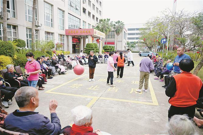 三月里,采访当天的早上八点,气温骤降,老年公寓一楼大堂却笑声阵阵,暖意融融。老人们系着红彤彤的围巾,为二人转节目拍手叫好,玩投飞镖游戏不亦乐乎。爱欣老年公寓的院长张玉虾说,这里住着130多位老人,有失能老人、孤寡老人,也有子女来厦工作的老人家,“老人每天都有活动,二楼三楼专业诊室可以随时为老人看病,实现医养结合”。