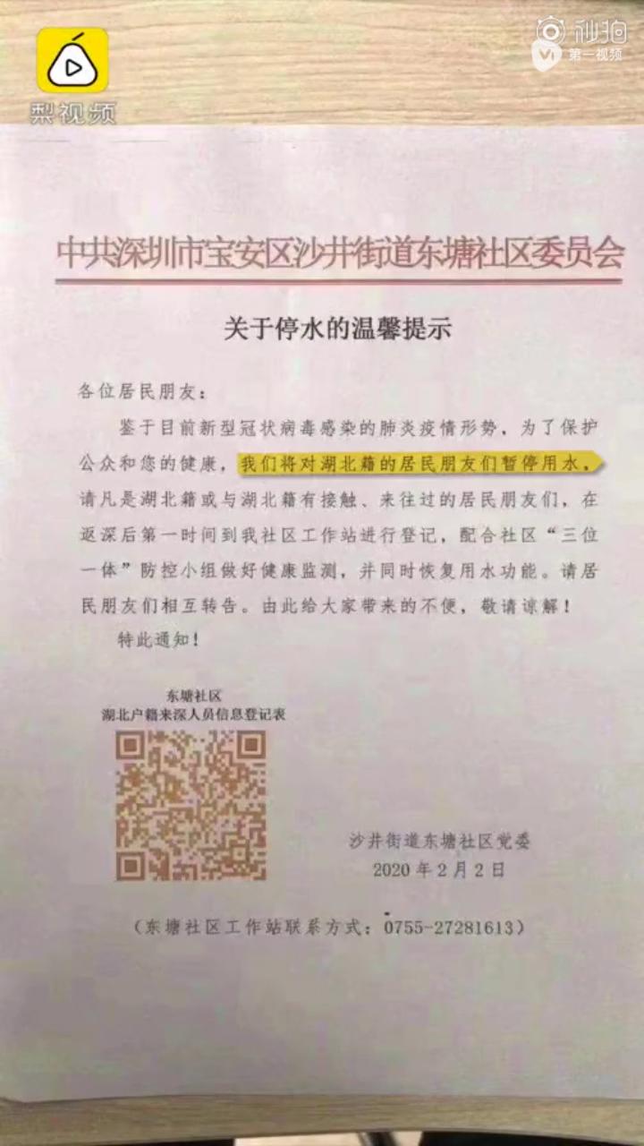社区对湖北籍住户停水:申报就恢复