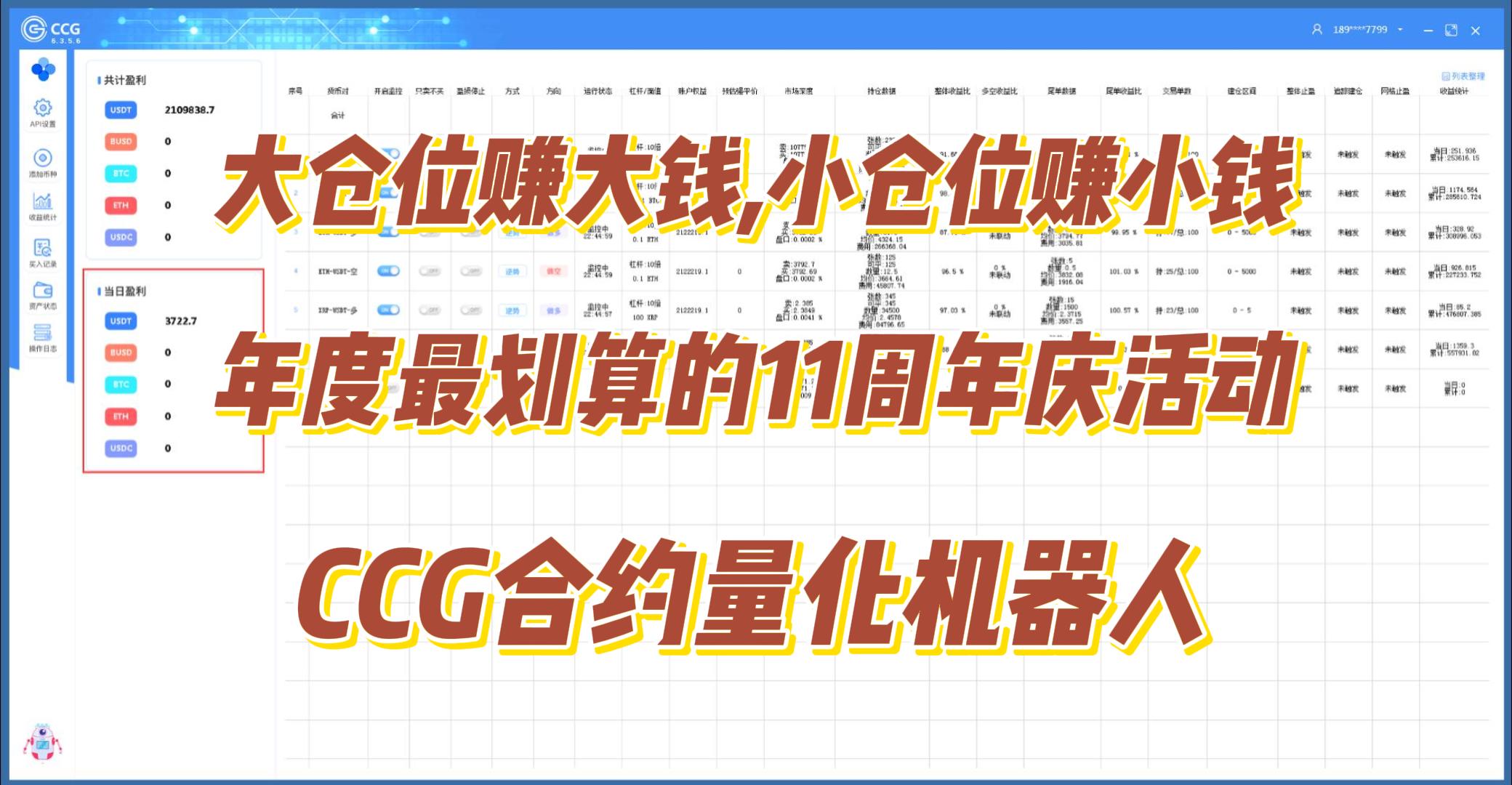 大仓位赚大钱,小仓位赚小钱,年度最划算的11周年庆活动,CCG合约量化机器人