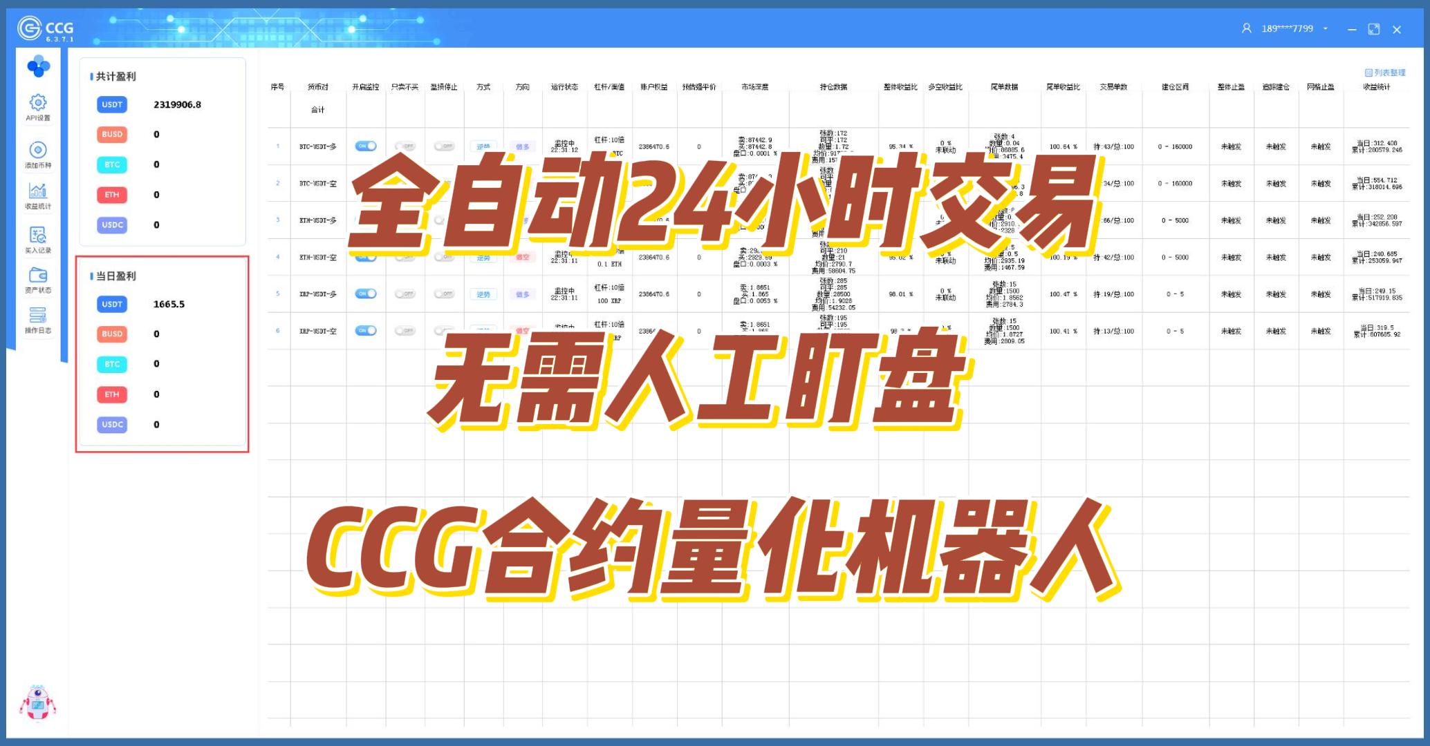全自动24小时交易,无需人工盯盘,规避人为交易情绪,博森科技CCG合约量化机器人