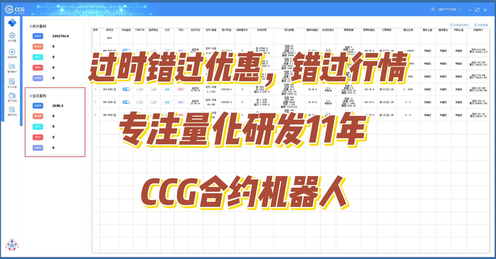 过时错过优惠,错过行情,抓紧部署量化,专注量化研发11年,博森科技CCG合约机器人